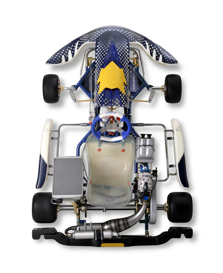 The 7-times World Champion Kosmic Kart is the historic brand of OTK Kart Group and the newest evolution, the Kosmic Mercury T - MY2025, confirms itself at the top of the OTK range. The chassis is made entirely of Ø 30 mm tubes, leaving OTK’s renowned manufacturing quality unchanged. The 2025 model introduces new features such as the new chain tensioner and new 2025 graphics.